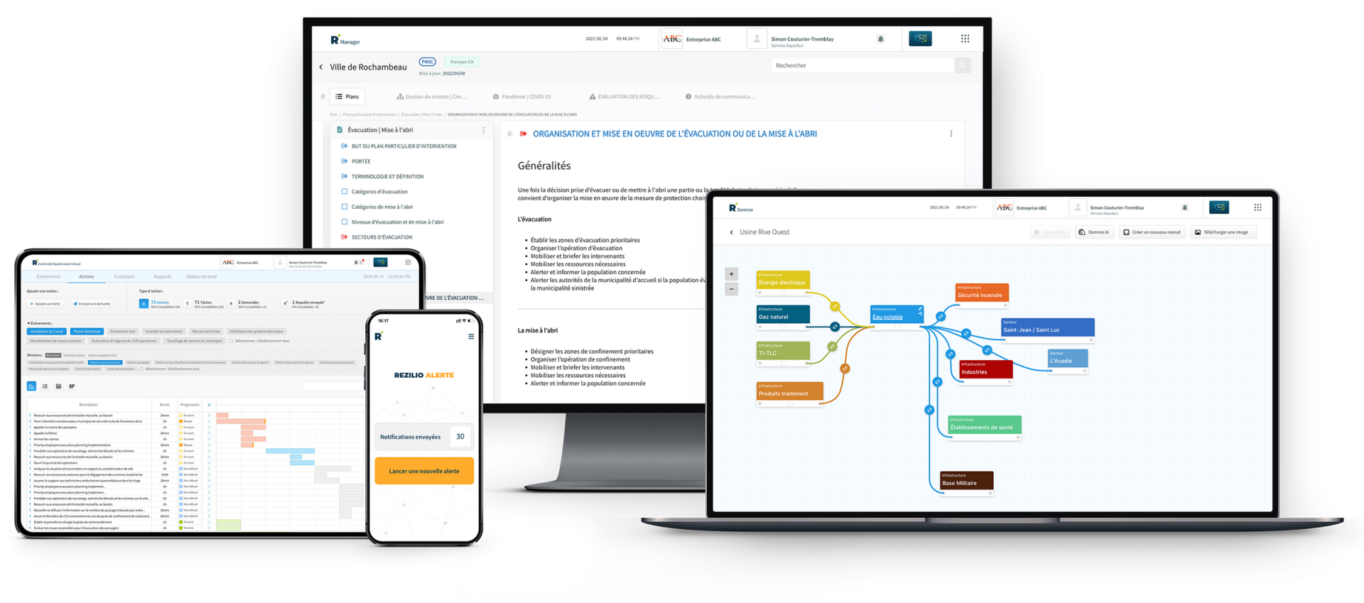 La plateforme SaaS de Rezilio ainsi que ses modules spécialisés s’adressent aux organisations publiques et privées qui recherchent un outil numérique évolué, simple et performant afin d’être mieux préparé à faire face à toutes éventualités.